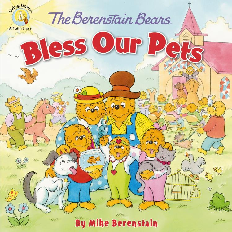In the newest Berenstain Bear Living Lights title, The Berenstain Bears Bless Our Pets, Brother, Sister, and Honey Bear love their pets Little Lady, Gracie, Swish, and Cutsie … they are just like part of the Bear family. So when Preacher Brown holds a special Blessing of the Pets service on Sunday, the Bear family joins in. But what starts as a peaceful gathering of Bear Country neighbors and their animal friends on the lawn of the Chapel-including dogs, cats, rats, goats, and even a snake or two-ends up needing a little heavenly intervention.