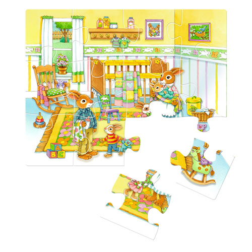 Children love to play big brother or sister…especially with this pretty puzzle! 24 piece, simple colorful animal graphics and thick, coated pieces make this puzzle a perfect toy.