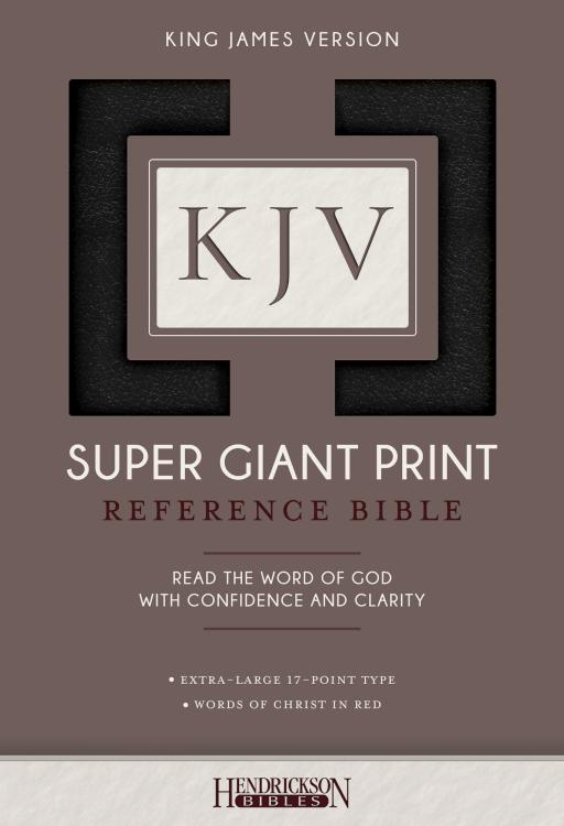 The brand-new King James Version Super Giant Print Reference Bible, with generous 17-point type, is a readable choice for those who need a larger font. Competitive pricing and many excellent features set this beautiful Bible apart, and make it a welcome edition to Hendrickson’s KJV Bibles line.